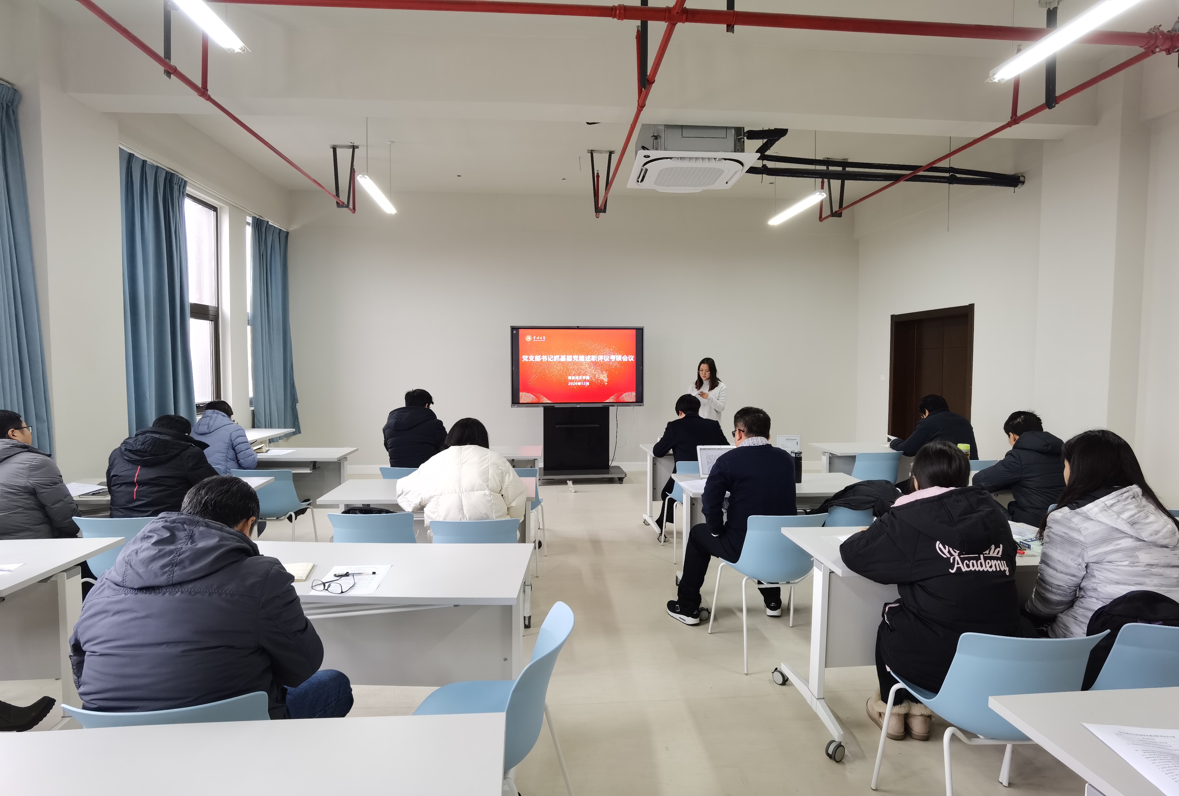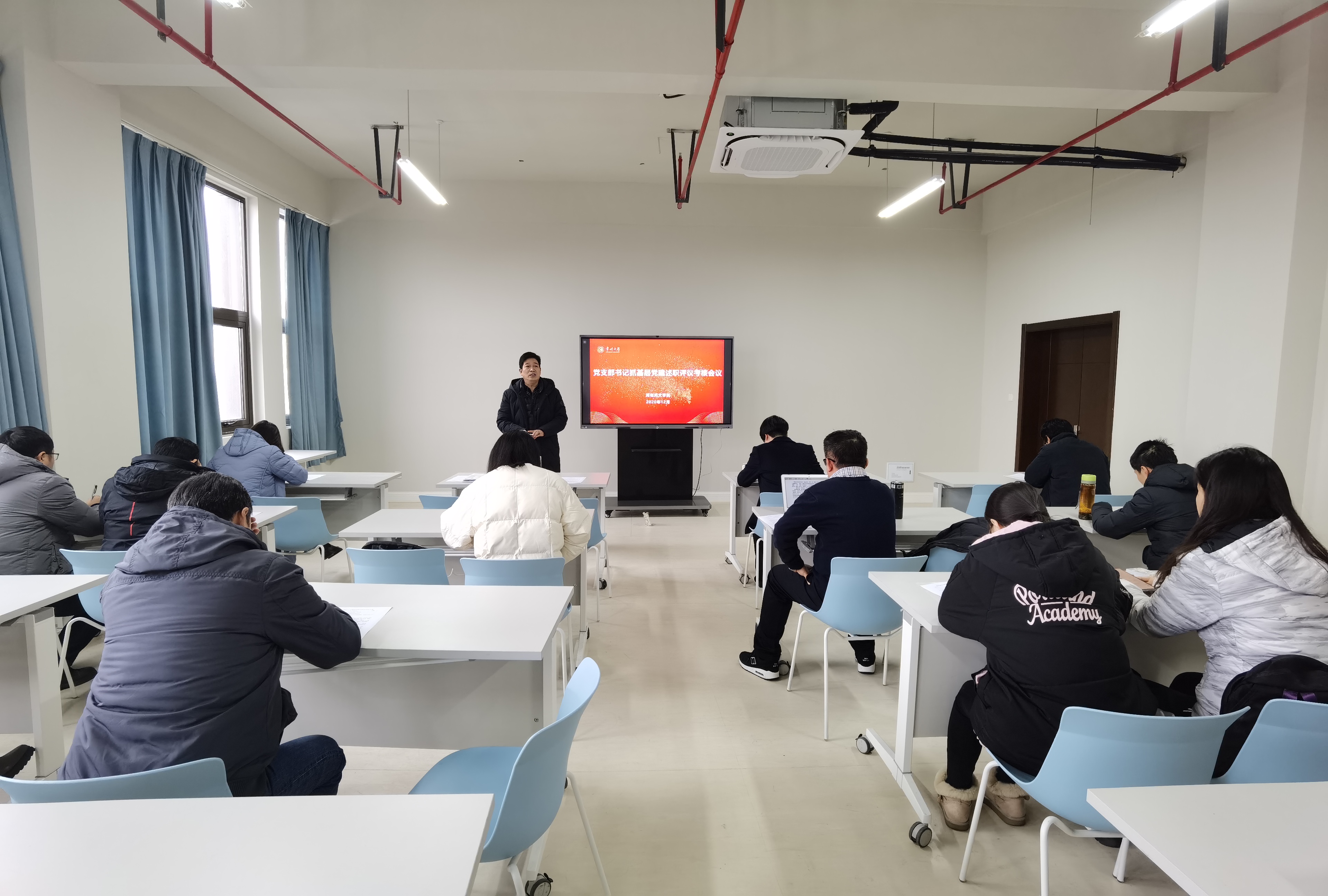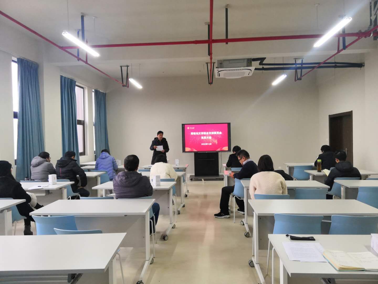 12月23日下午,麻豆传媒 总支部委员会在西太湖校区立言楼349室召开全体党员大会,会议由党总支书记焦洁庆主持。