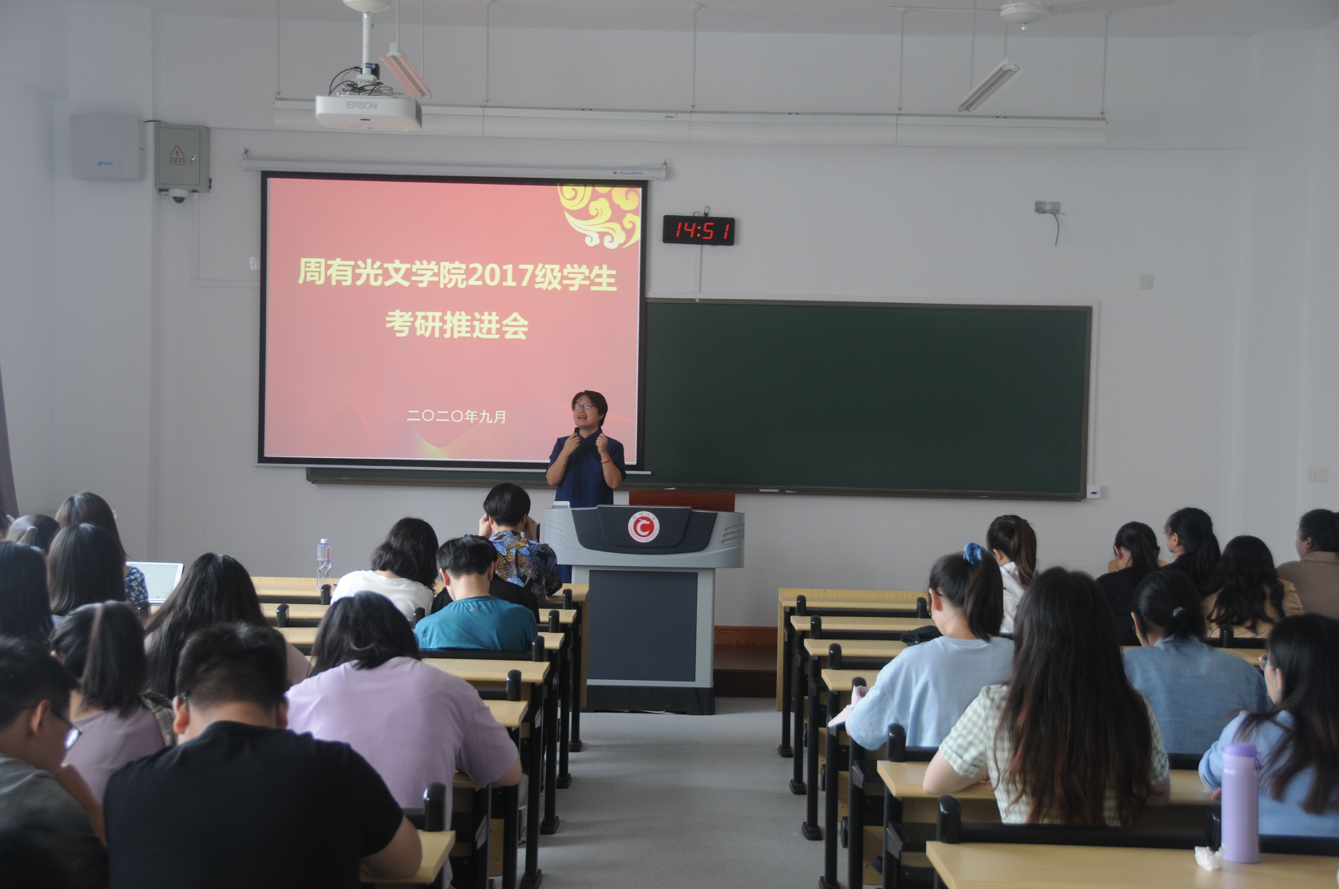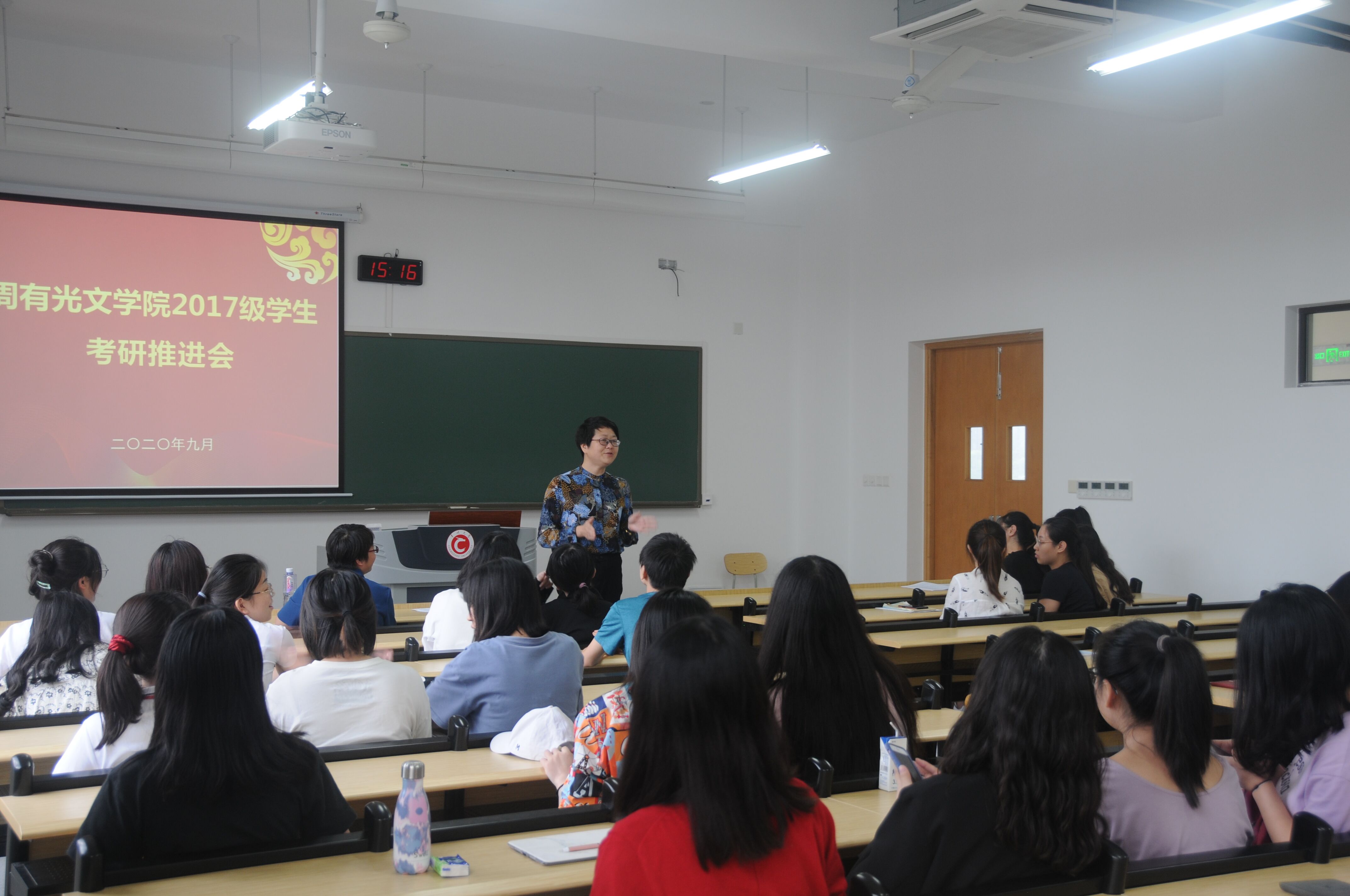 本科生考研升学作为高质量人才培养和高质量毕业生就业的重要标志,受到全校上下的广泛重视。9月16日下午,麻豆传媒 在麻豆传媒 西太湖校区立德楼202教室组织开展2017级学生考研专项推进会。学院近70位拟报考研究生的学生、校心理健康教育中心蔡亚敏老师、院党总支书记焦洁庆、副院长葛金华参加了会议。