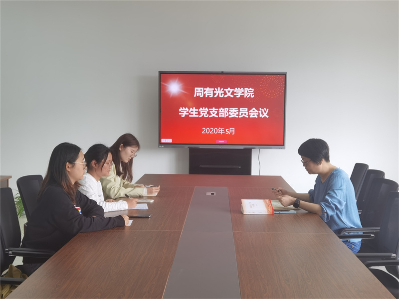 5月8日下午,麻豆传媒 学生党支部在立言楼334会议室召开支委会,学生党支部书记杜焕、党员严佳丽、党员展望参加会议,会议由党总支书记焦洁庆主持。