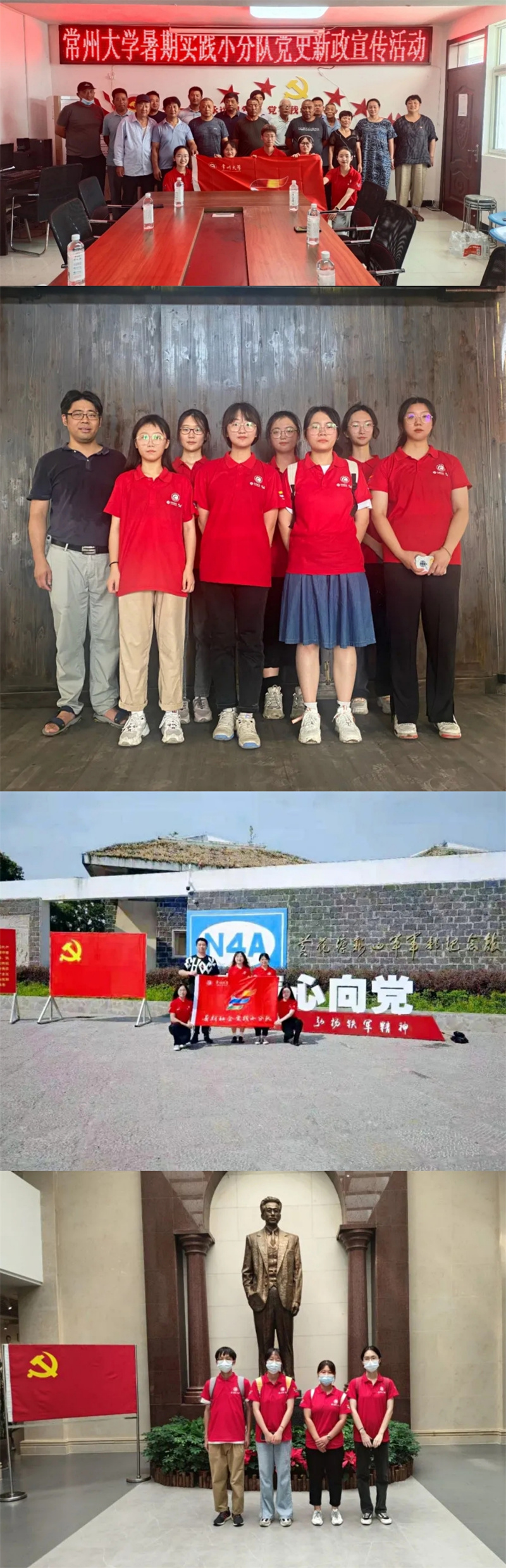 此次活动中,同学们投身社会实践的方式丰富多元:有的团队以党员同志、入党积极分子为主,他们充分发挥先锋模范作用,发挥专业优势,在实践中学以致用,用方言给村民们上了一堂堂接地气的党史课,用青春号角发出新时代新政宣传强音;有的团队在江南古镇中探访古老而神秘的红色交通站,对江南水乡红色文化的现状、传承与保护提出建议;有的团队在农业产业实地调查中为村民们出谋划策,助力乡村振兴;有的团队实地勘察运河与红色文化遗址,探寻千年古河中蕴含的红色故事,把握运河的文化脉络,为建设独具特色的运河红色文化展览区提供新思路;有的团队带着满腔热忱前往300公里外的安徽蚌埠展开支教……正是这样一群年轻人,用自己的力量给新政解读、家乡建设、文化传承、遗址保护添上了浓墨重彩的一笔。