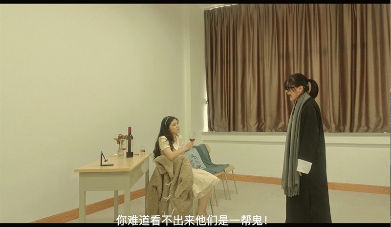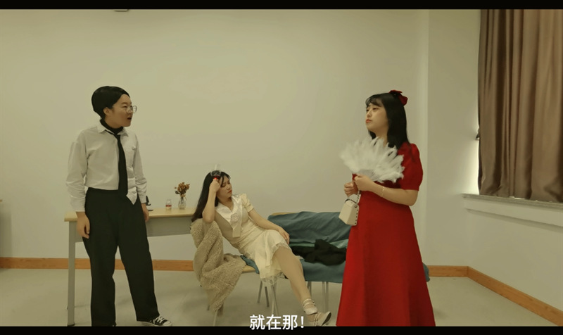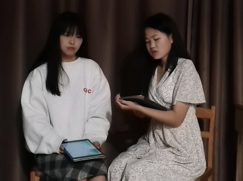 郑宇小组选择的是曹禺的《北京人》,由江泰、袁任敢、曾文清三人对话和愫姨、瑞贞二人对话两幕同时进行的片段构成,一方面通过对话揭示曾文清情史,为后续剧情做铺垫,同时也通过愫姨、瑞贞两人对话凸显出两人的不同性格,一定程度上揭示了两人在后续情节中的性格缘由。
