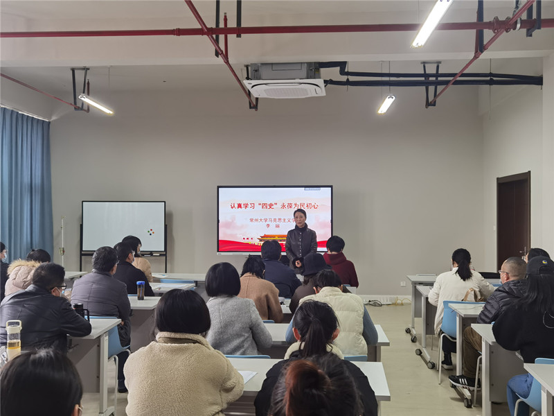 会上,马克思主义学院李丽老师从习近平讲话精神深刻阐述了学习四史的全民性,并从辩证关系、现实意义、为民初心三个方面论述了四史教育的重要性。党支部书记焦洁庆强调,学院师生要继续努力学习,争取做到学史明理、学史增信、学史崇德、学史力行。