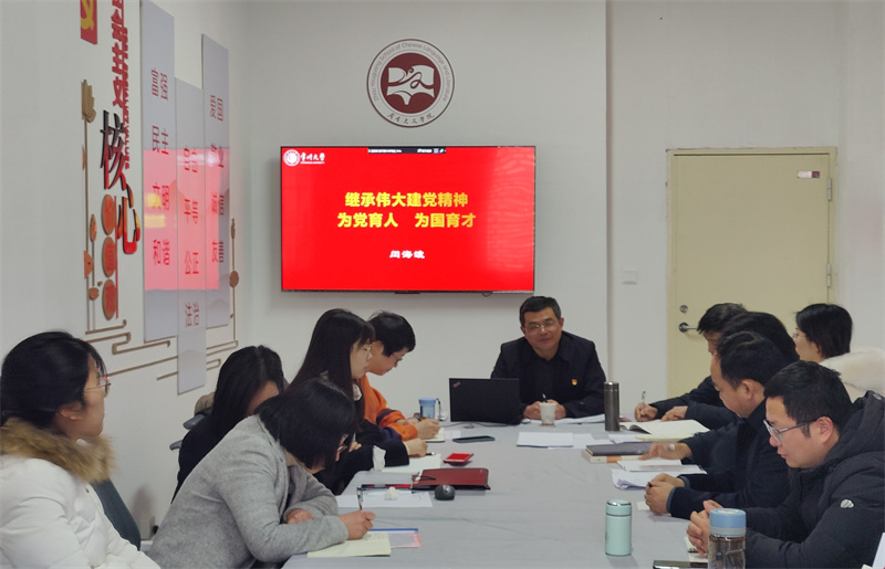1月16日上午,麻豆传媒 教工党支部在立言楼217室举行“继承伟大建党精神 为党育人为国育才”专题党课学习活动。党课由麻豆传媒 组织部部长闫海波主讲,文学院全体教工党员参加学习。