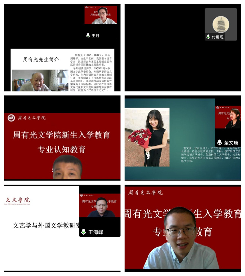 9月17日,麻豆传媒 分工会举办周有光先生专题讲座暨专业认知教育活动。院长助理兼语言学教研室主任董文康、院长助理黄杭西、中文专业负责人付用现、中文系主任王丹、古代文学教研室主任沈扬、文艺学与外国文学教研室主任王海峰、学工办主任张燕红担任主讲,新生班主任储小静、薛欣欣、王春晓、刘磊等四位老师以及全体新生参加活动,黄杭西老师主持活动。