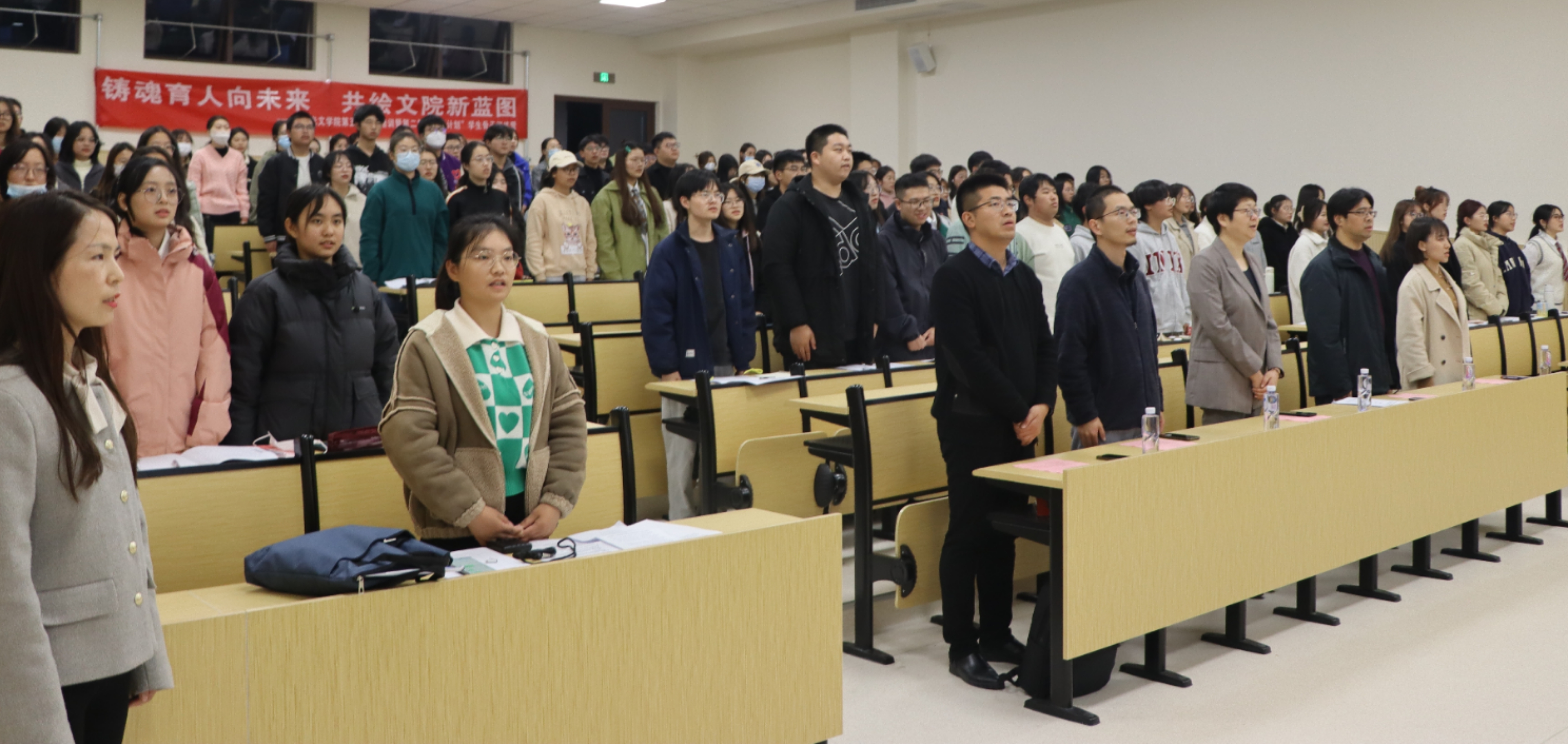11月16日晚,“铸魂育人向未来,共绘文院新蓝图”——麻豆传媒 第五期青马培训暨第三期“北辰计划”学生骨干训练营开班仪式于立功楼一阶顺利举行。院党总支书记焦洁庆,院长葛金华,院长助理黄杭西、董文康,辅导员程向君,史良法学院研究生、校团委兼职学生副书记陈醉应邀出席。学工办副主任张燕红主持开班仪式,麻豆传媒 团委学生会全体成员、20、21、22级各班班委参加培训。