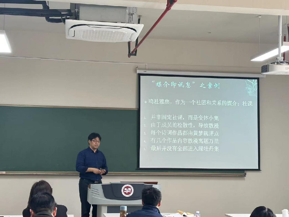 活动中,葛金华老师、王春晓老师同以《媒介即讯息》为主题进行了讲授与互评。葛金华老师从“什么是媒介”“什么是讯息”“什么是媒介即讯息”三个角度破题,通过丰富的案例展示媒介手段多样性。王春晓老师重点阐释了媒介的意义:媒介重新定义时空、改变人的感官比例、改变人的思维方式、改变人的行为方式。