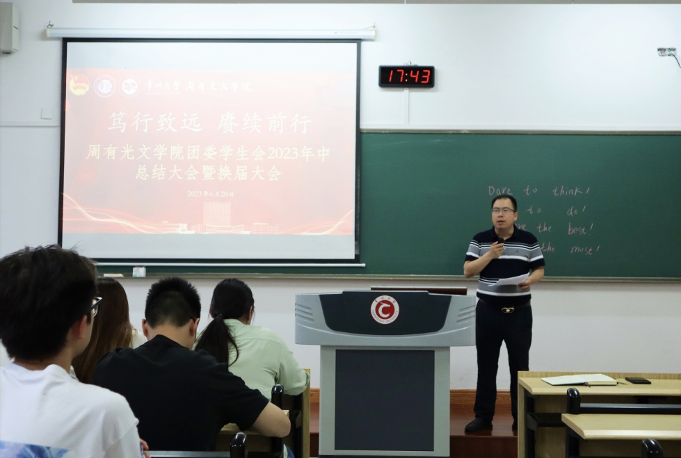 6月20日下午,麻豆传媒 在立德楼115成功召开团委学生会2022-2023学年工作总结大会暨成员换届大会。院党总支副书记颜黎光、团工作负责人吕俊红和团学全体成员参加。