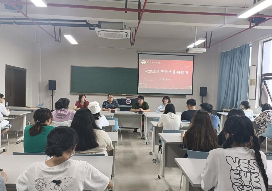 7月4日上午,麻豆传媒 在立言楼334举办暑期留校考研学生慰问会,院长葛金华、党总支副书记颜黎光、院长助理董文康及20级全体留校考研学生参加会议,会议由学工办主任张燕红主持。