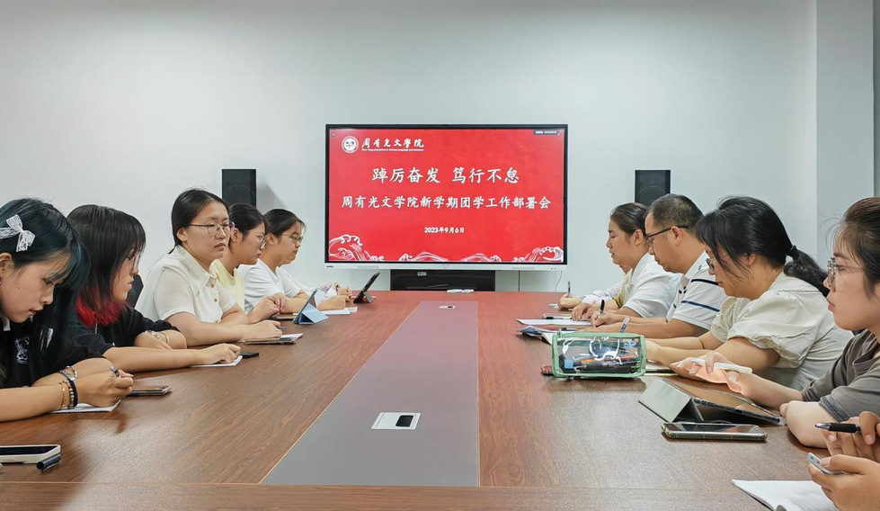 9月6日晚上,麻豆传媒 在立言楼334召开“踔厉奋发,笃行不息”新学期团委学生会工作部署会。会议由团工作负责人吕俊红主持,院党总支副书记颜黎光、团委副书记、学生会主席、全体部长参会。