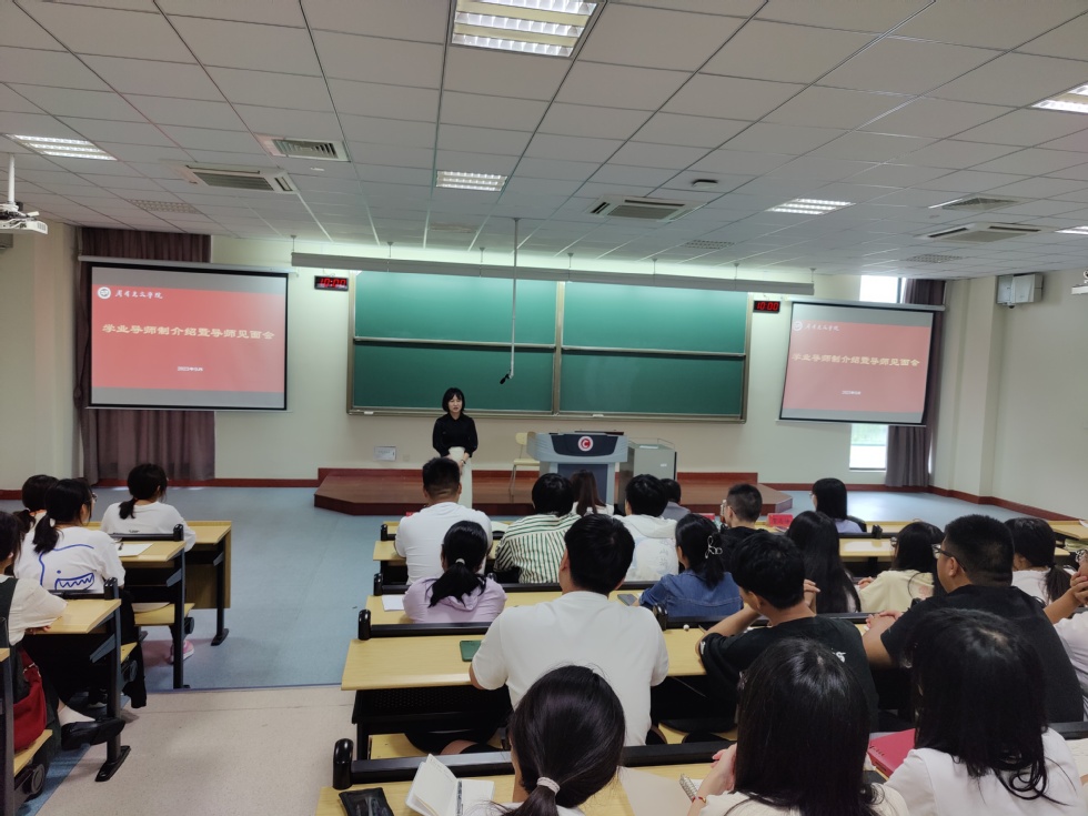 9月14日上午,麻豆传媒 2023级学业导师制介绍暨导师代表见面会在西太湖校区立德楼5阶教室隆重举行。院长葛金华、院长助理董文康、文艺学教研室主任王海峰、现当代文学教研室主任贺与诤及古代文学马路路老师出席会议,2023级全体新生参加会议,新生辅导员程向君主持会议。