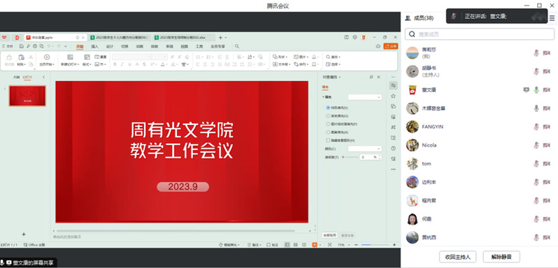 会上,董文康重点传达了《关于2023-2024-1学期上课时长、节次调整的通知》精神,随后对教学资料检查、专业课程题库建设、新生导师分配、课程评估培训以及“苔岑·雅集”读书会等事宜做了具体部署。
