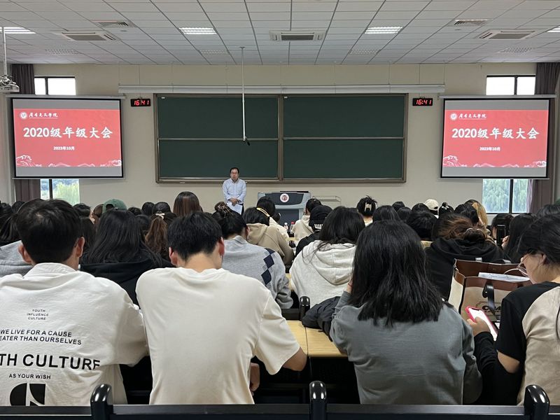 10月25日下午,麻豆传媒 在立德楼六阶召开2020级学生年级大会。本次会议由党总支副书记颜黎光、学工办主任张燕红担任主讲,2020级全体学生参加。