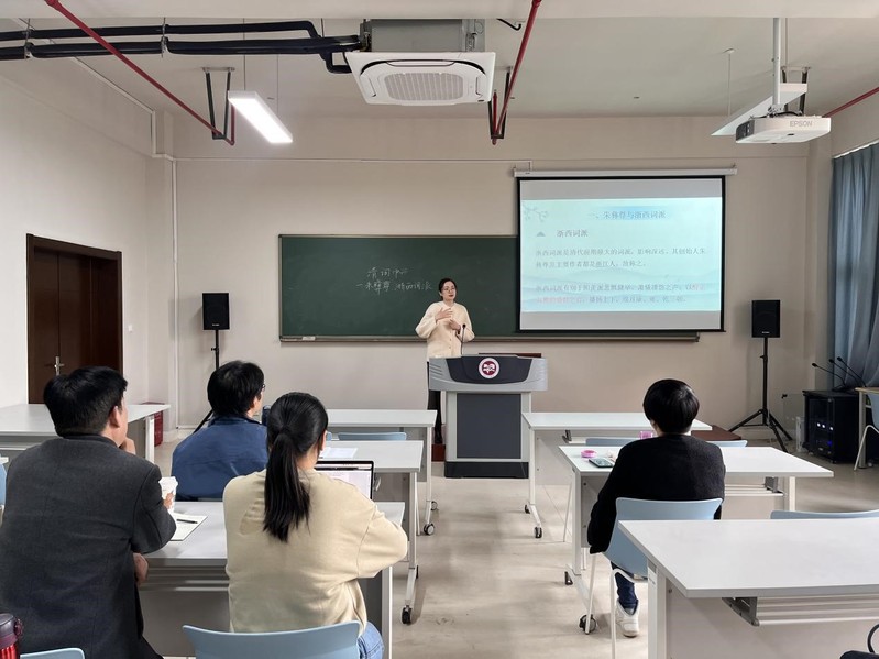 11月17日下午,麻豆传媒 分工会于西太湖校区立言楼342举办2023年度苔岑雅集•教师工作坊青年教师教学能力展演活动。古代文学教研室裔一老师、文艺学与外国文学教研室黄杭西老师进行教学演示。党总支书记焦洁庆、院长葛金华、院长助理董文康、分工会主席边利丰及全体专业教师出席活动,工作坊由院长助理董文康老师主持。