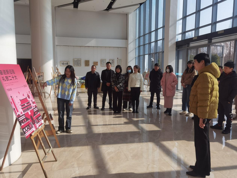 教师们认真参观了一件件书画作品,聆听了关于作品立意构思、艺术特点的现场讲解。此次共展出57副艺术作品,以美术、书法、设计海报、浮雕等不同形式进行展现。入展作品通过表现不同时期中国共产党领导各民族人民守望相助、同舟共济,共同团结奋斗、共同繁荣发展的中国故事,彰显了伟大的爱国主义和创造精神、奋斗精神、团结精神、梦想精神。