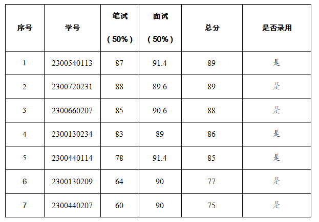 学院于2024年2月25日对申请转入学院汉语言文学专业的学生进行了考核,经专业面试、笔试,现将考核总评成绩及拟录取名单公布如下: