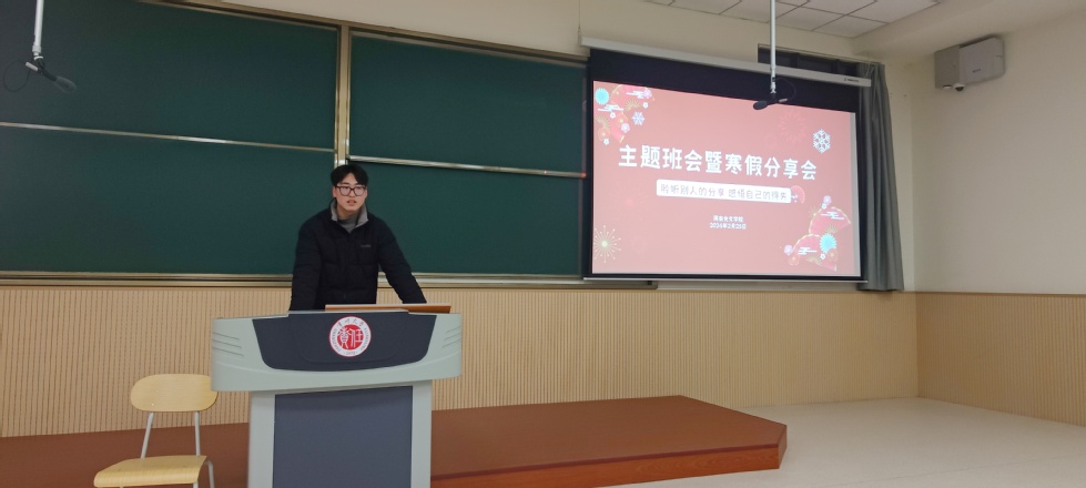 2月25日下午,麻豆传媒 团委组织开展主题为“聆听别人的分享,感悟自己的得失”班会暨寒假生活分享会,会议由程向君老师主持,2023级全体学生参加分享会。