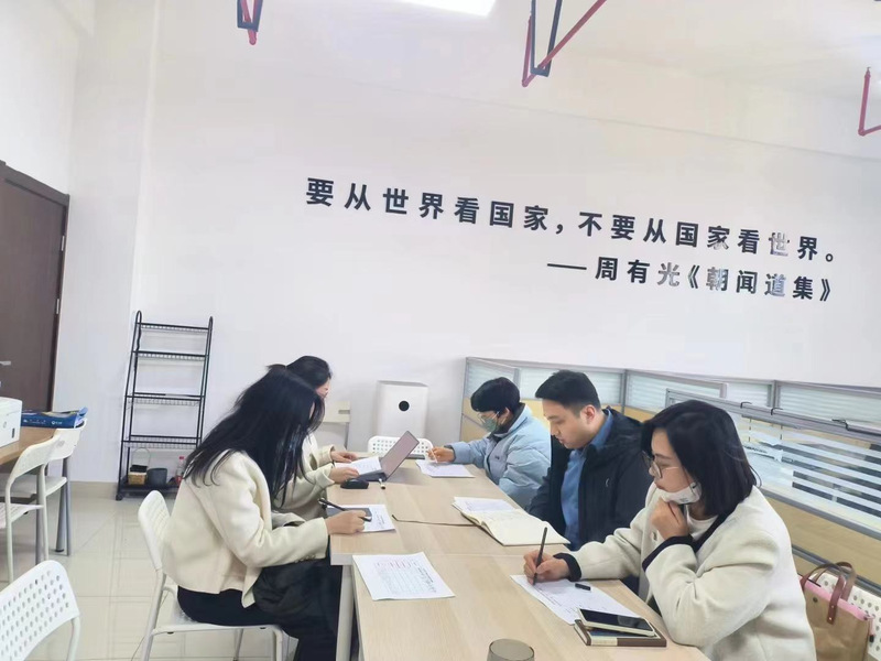 会议伊始,刘磊老师首先向与会老师汇报了国际中文教育硕士点申报的最新进展,并就学科发展相关问题与老师进行了研讨。之后,刘磊老师对教研室近期工作进行了安排,包括教研室思政示范课程与产教融合课程建设、学院科研任务最新要求与任务分解、国际中文教育相关课程教材编写、创新创业课程实践项目落地等。随后,大家就近期国家社科基金申报等重要工作进行了研究讨论。此次会议的召开明确了接下来的重点工作,为后续工作的稳步推进奠定了良好的基础。(通讯员/朱潇 审核/焦洁庆)