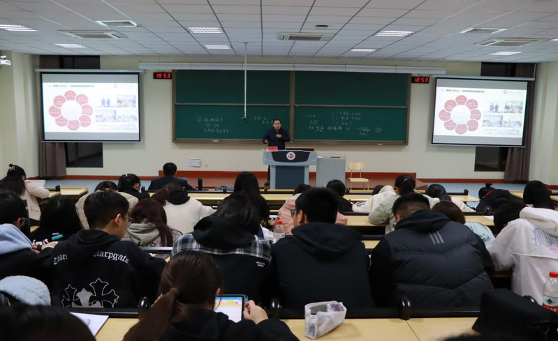 讲座最后,他着重介绍了“思政+文化”的育人模式,强调这一模式对于促进学生多维发展的重要性。他鼓励学生们坚定信念,锤炼本领,为学院团学工作的持续发展注入活力。