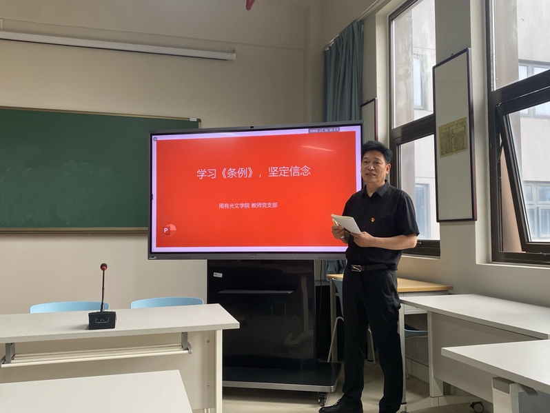 5月21日下午,麻豆传媒 教工党支部于立言楼342会议室开展题为“学习《条例》,坚定信念”的党纪学习教育专题党课。党课由支部书记付用现主讲,学院领导班子和全体教工党员参加学习。