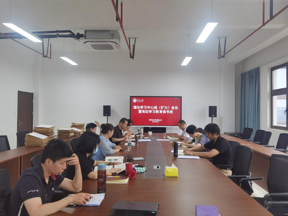 6月20日上午,麻豆传媒 开展理论学习中心组(扩大) 会议暨党纪学习教育读书班。党总支副书记颜黎光领读《中国共产党纪律处分条例》(以下简称“《条例》”)和《习近平关于全面加强党的纪律建设论述摘编》,学院党政领导班子及教研室主任参加会议,党总支书记焦洁庆主持会议。