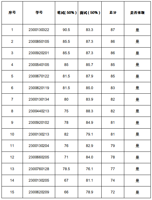 学院于202478日对申请转入学院相关专业的学生进行了考核,经专业面试、笔试,现将考核总评成绩及拟录取名单公布如下: