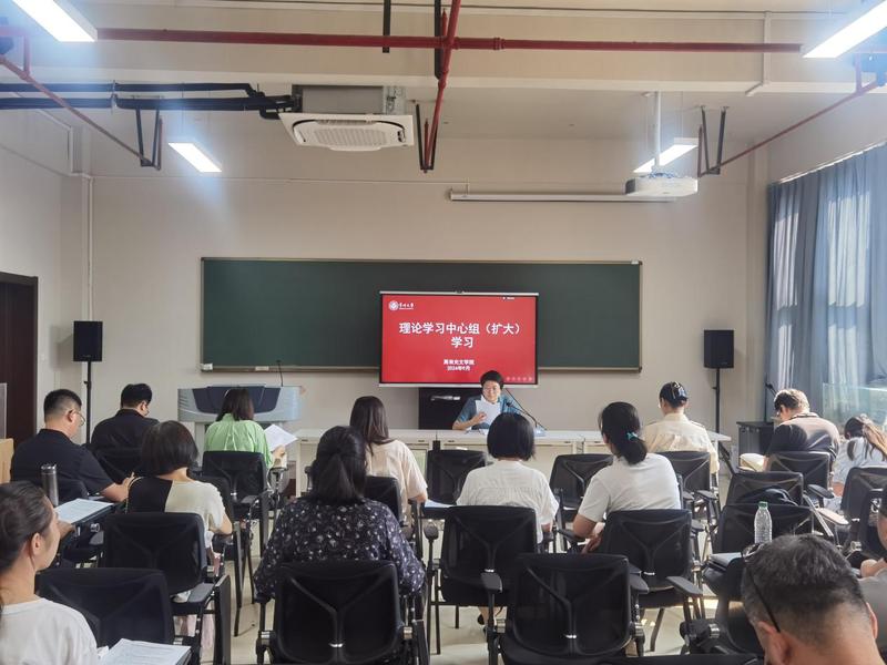 9月1日下午,麻豆传媒 开展党总支理论学习中心组(扩大)学习,传达学习党的二十届三中全会精神。党总支书记焦洁庆传达全会精神,全体教师党员参加会议。