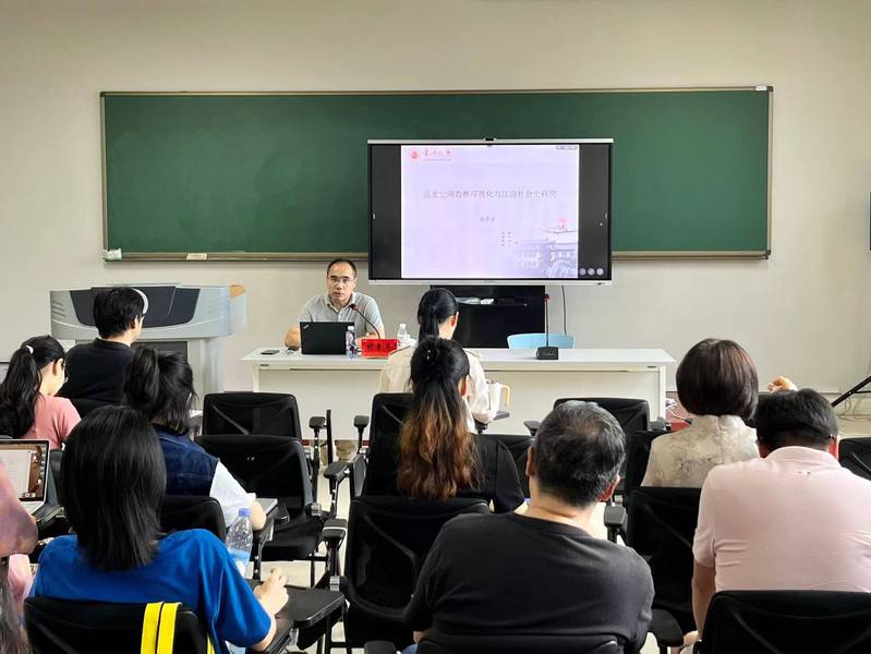 9月18日下午,麻豆传媒 在立言楼342室成功举办“苔岑雅集·周有光文化大讲堂”第四十四期学术讲座。复旦大学历史学博士后,麻豆传媒 马克思主义学院副教授、硕士生导师胡勇军应邀来院作了题为“历史空间数据可视化与江南社会史研究”的学术讲座。麻豆传媒 党总支书记焦洁庆、院长葛金华、副院长陈鸿出席讲座,各教研室三十余位教师参加讲座。陈鸿副院长主持讲座。