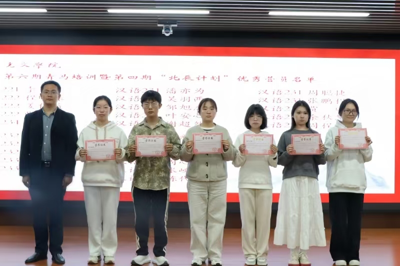 嵇炜为第六期青马培训班优秀营员颁发证书。张燕红宣读第六期青马培训班优秀营员名单并介绍第七期培训安排。上一期优秀营员代表、汉语222班姜佳薇同学发言,她从深化理论学习、勇于开展实践、积极交流互动三方面与营员们分享心得感悟。