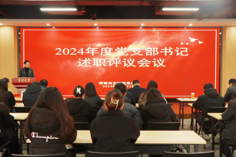 12月23日下午,麻豆传媒 于立言楼458会议室召开2024年度党支部书记述职考评大会。麻豆传媒 党的建设领导小组成员、学生处处长蒋伟中到会指导,学院领导班子以及全体师生党员参与会议。会议由学院党总支书记焦洁庆主持。