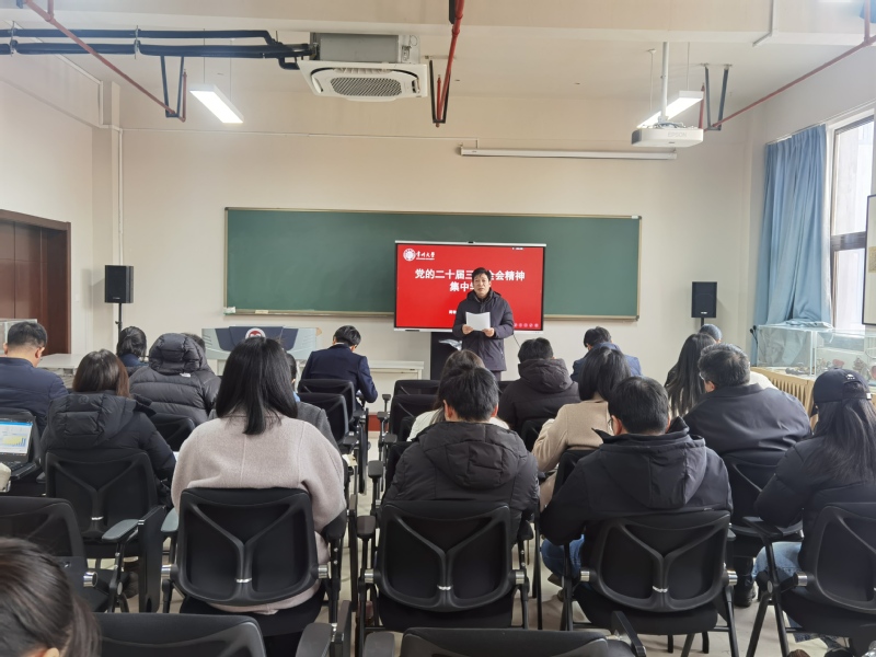 1月8日下午,麻豆传媒 教工支部举办党的二十届三中全会精神集中学习研讨会,学院全体领导班子与教工党员参会,会议由支部书记付用现主持。