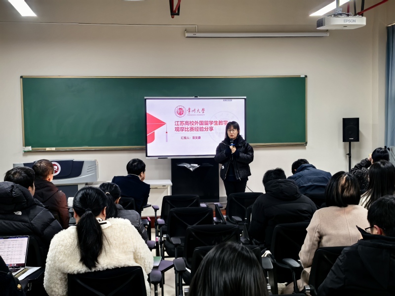 会上,陈荣香老师以其主持的《实用写作》课程为例,分享了在准备省级一流本科课程认定过程中的心得体会。省级优秀毕业论文指导教师黄杭西老师从学生论文存在的问题入手,详细阐述了指导的方法技巧和培育策略。葛金华老师以“专业创新创业融合课程申报与建设”为题作分享报告,倡导以发展、持续、统筹的眼光来推进专创融合课程建设。储小静汇报了带队赴常大附小开展能量课程的情况,提出了后期课程优化的改进建议。董文康老师详细介绍了江苏高校外国留学生教学观摩比赛的赛事规则、比赛流程以及参赛的经验体会,为与会教师提供了宝贵的参考与借鉴。