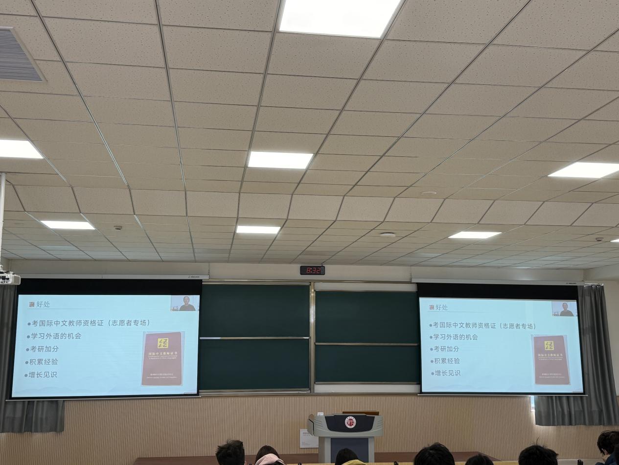 陆苏琨从课堂管理、教学方法等多个维度,结合自身在泰国的教学经历,讲解了国际中文教育志愿者应该具备的素养。同时,她解析了选拔流程,强调了专业笔试和试讲环节的核心要点,建议同学们在教学设计中融入特色才艺。程智琳围绕文化适应进行分享,针对跨文化挑战,她提出了“3C法则”,即保持好奇、有效沟通和情绪稳定。宋晓雪系统梳理了考编流程,特别强调要注重打牢学科基础,并且以自身在小学的教学实践为例,剖析了教师的工作内容和教学要点。