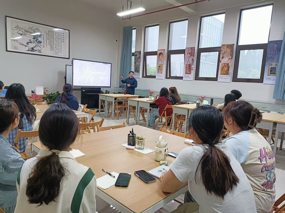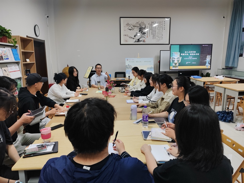 黄杭西老师作了题为“后人文时代的阅读方法、途径和目的”的阅读分享,他详细阐述了当今时代人文阅读与科技发展的复杂关系,探讨了阅读方法从文本细读到人机协作的转变、阅读途径由纸质媒介向数字化平台的演进,以及亟需重估阅读的目的等问题。随后,他还与同学们分别就自己阅读过程中的体验、问题、启发等内容进行了深入交流。