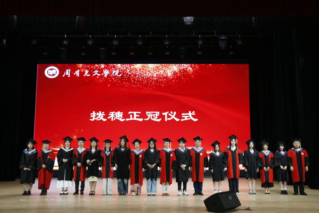 随后,学院学位委员会全体成员为毕业生代表一一拨穗、正冠,并与大家合影留念。