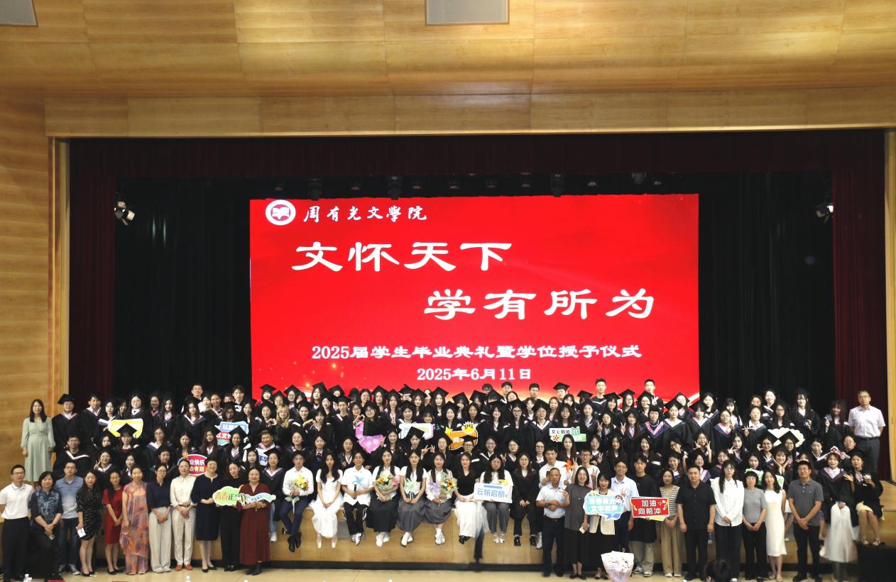 6月11日,“‘文怀天下 学有所为’——麻豆传媒 2025届学生毕业典礼暨学位授予仪式”在西太湖校区立艺楼大礼堂隆重举行。学院2025届毕业生、毕业生家长代表,全体在校生,院党总支书记焦洁庆、院长葛金华、党总支副书记嵇炜、副院长陈鸿,院长助理董文康、黄杭西,汉语言文学专业负责人靳瑞芳、中文系主任贺与诤、工会主席边利丰、古代文学教研室主任王风丽、语言学教研室主任刘磊、学工办主任张燕红以及部分教师代表出席典礼。嵇炜主持典礼。