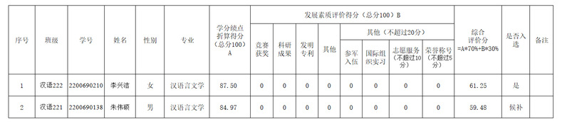 2026届优秀应届本科毕业生免试攻读硕士研究生名单进行公示,名单如下: