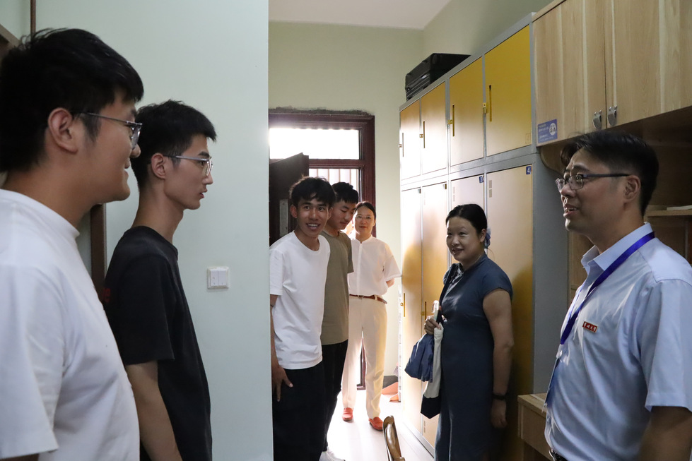 97日下午,学院党委书记焦洁庆、院长葛金华率领导班子成员、新生班主任及辅导员一行,深入2025级新生宿舍,开展走访慰问活动,为新同学送去学院的温暖与关怀。