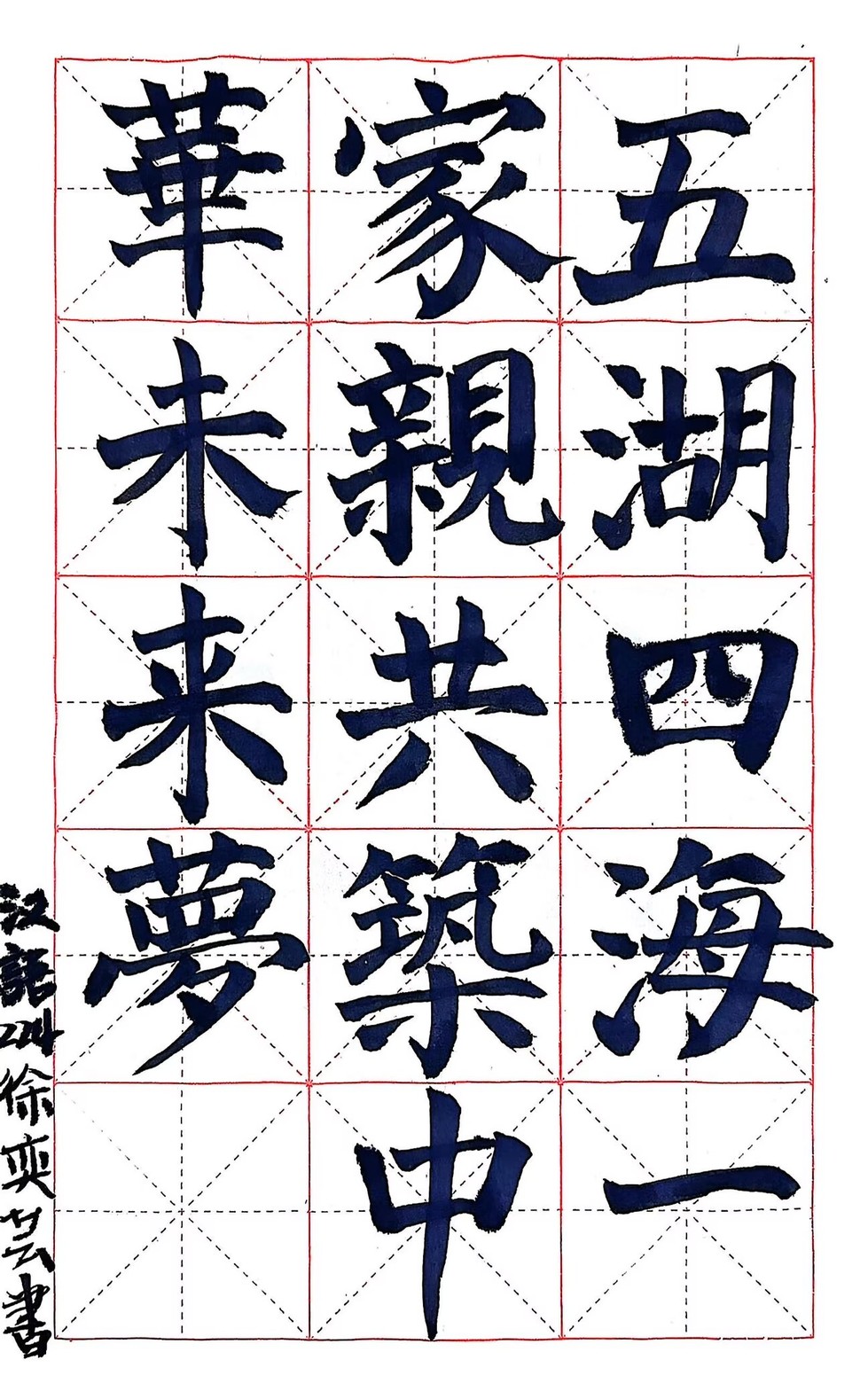 比赛共吸引近50名学生积极参与。参赛作品紧扣主题,既有“人生自古谁无死”所承载的舍生取义精神,也展现了“五湖四海,共筑中华”的博大胸襟。经学院专业教师围绕笔法技巧、结构布局、创意表达与思想内涵等多个维度进行综合评定,最终评选出一等奖4名、二等奖6名、三等奖9名。