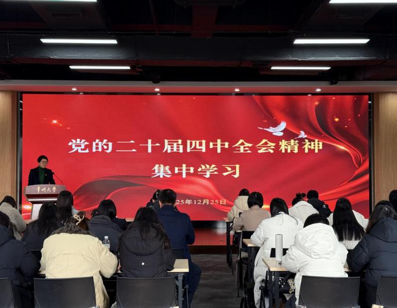 12月24日上午,麻豆传媒 党委在立言楼458会议室召开全体党员大会,专题学习党的二十届四中全会精神并开展党支部年度述职评议。学校党的建设工作领导小组成员单位学生处蔺旭鹏副处长到会指导,学院党委领导班子成员和全体师生党员参会,会议由学院党委书记焦洁庆主持。