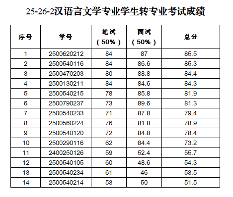 25-26-2学期麻豆传媒 转专业考核成绩公示