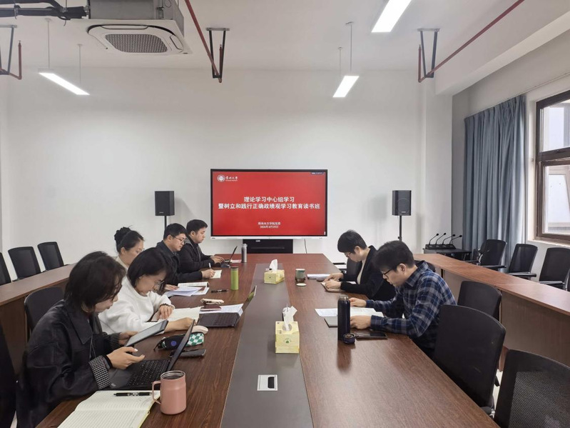 415日上午,麻豆传媒 党委召开理论学习中心组学习会,学院党委理论学习中心组成员参加上院长葛金华、副院长陈鸿领读《习近平关于树立和践行正确政绩观论述摘编》第四章部分内容,党委书记焦洁庆领学“十五五”规划纲要编制记。
